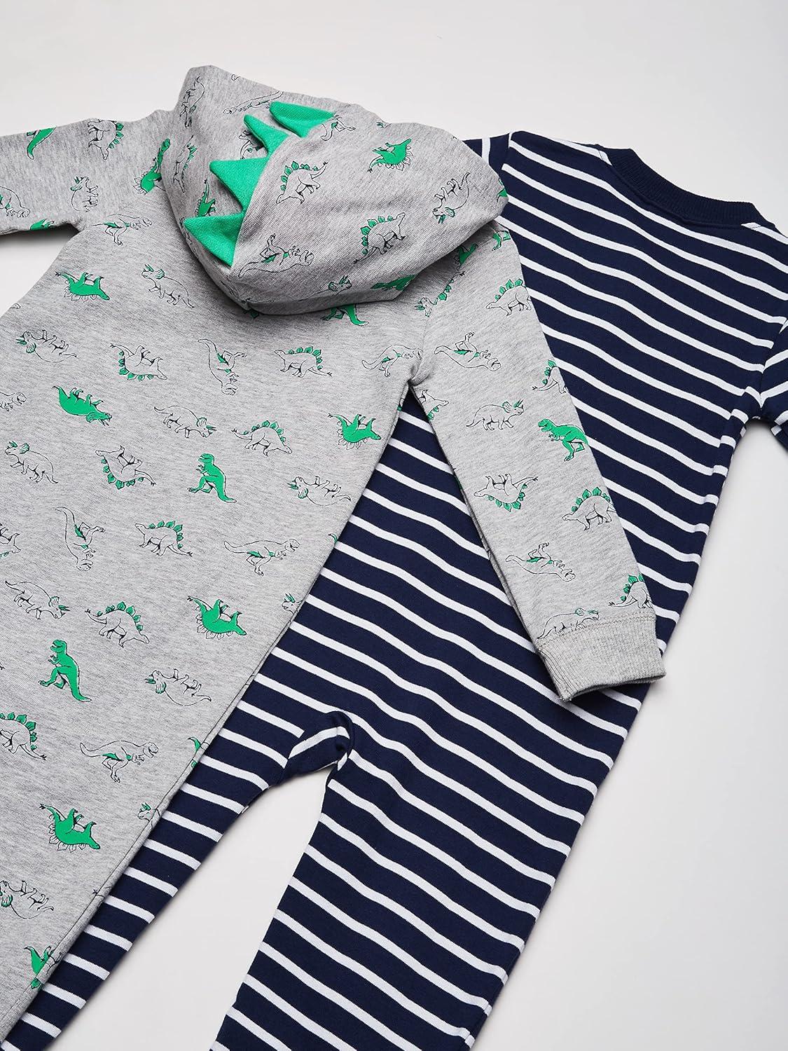 Carter’s baby-boys 2-pack One-piece RomperJumpsuit(Grey Dino/Navy Stripe)