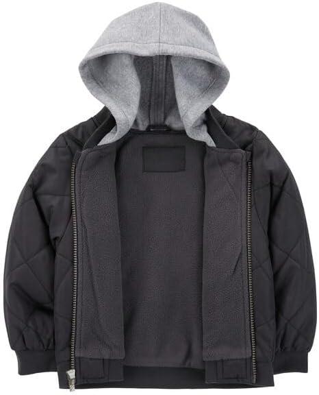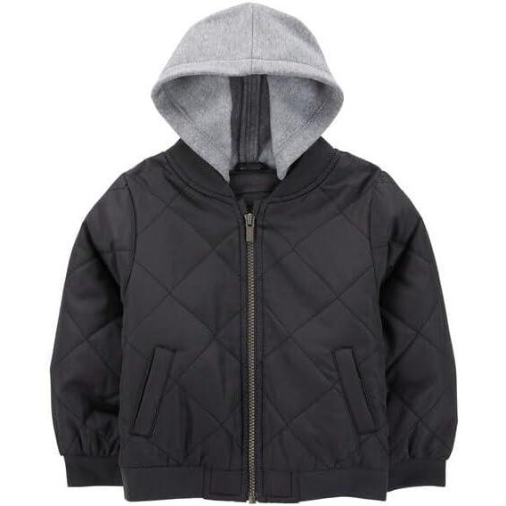 Carter’s baby-boys Midweight Quilted Bomber Jacket With Sweatshirt-style Hood(Black)