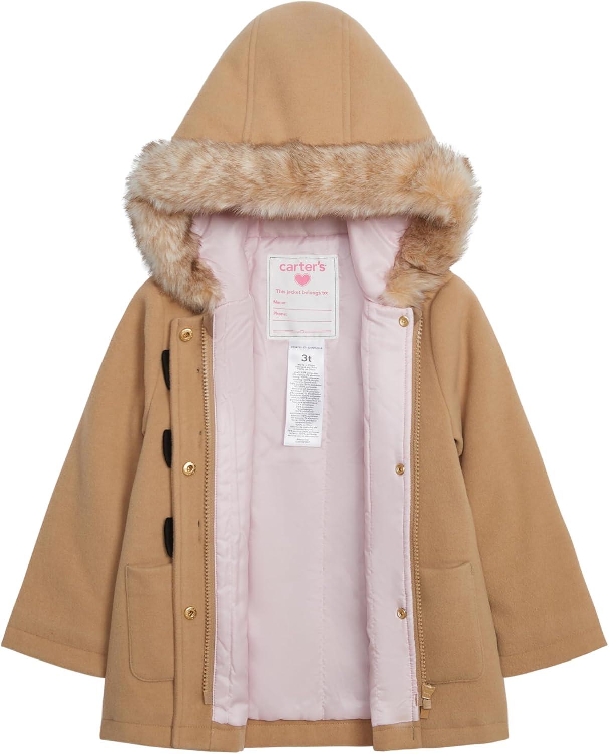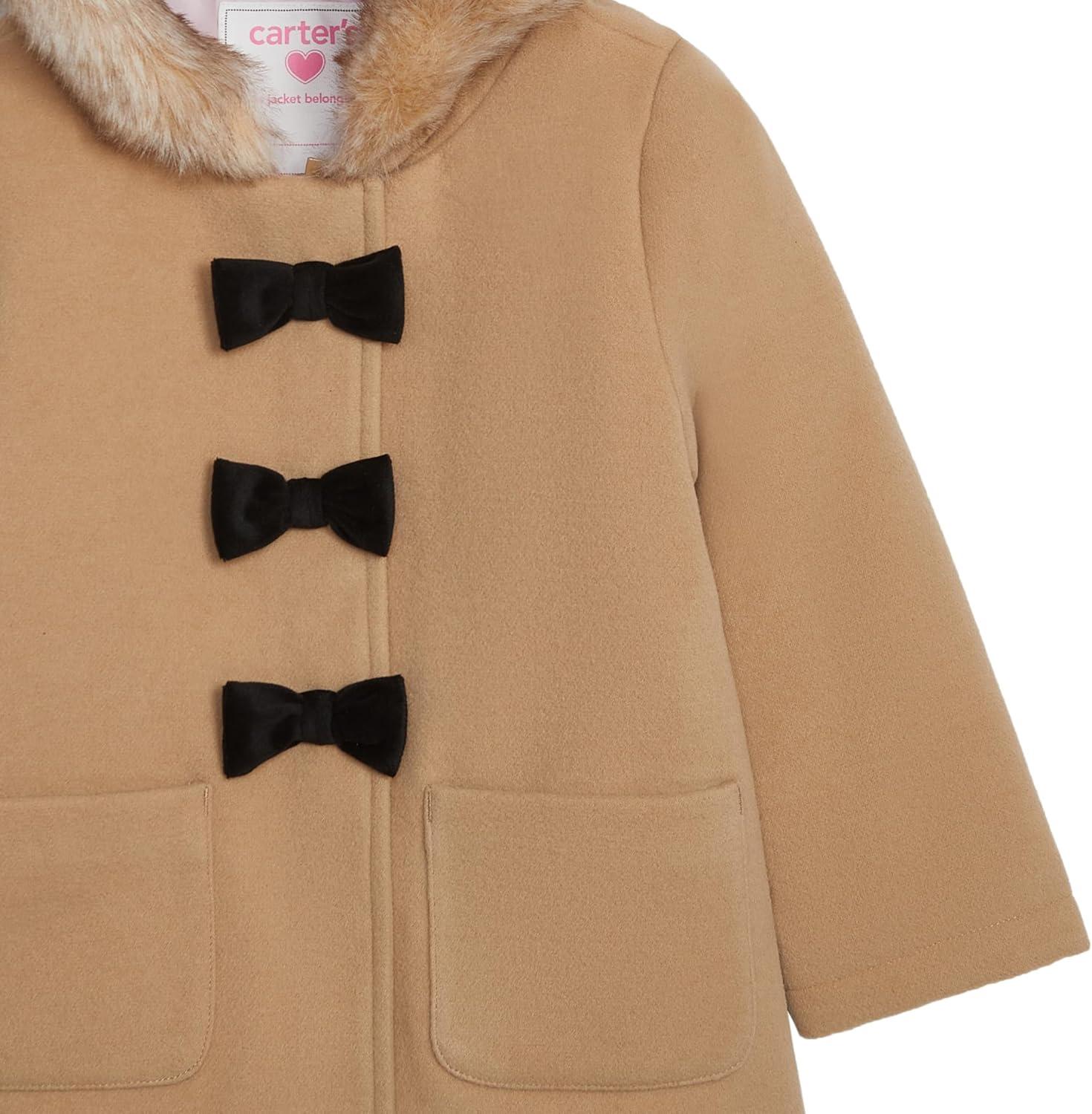 Carter’s Baby Girls’ Faux Wool Winter Dress Coat(Khaki)