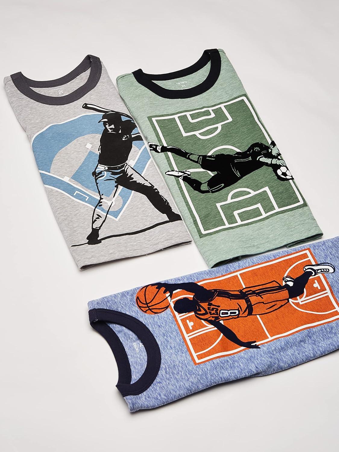 Carter’s Big Boys’ 3-Pack Short-Sleeve Graphic T-Shirt(Multi Sports)