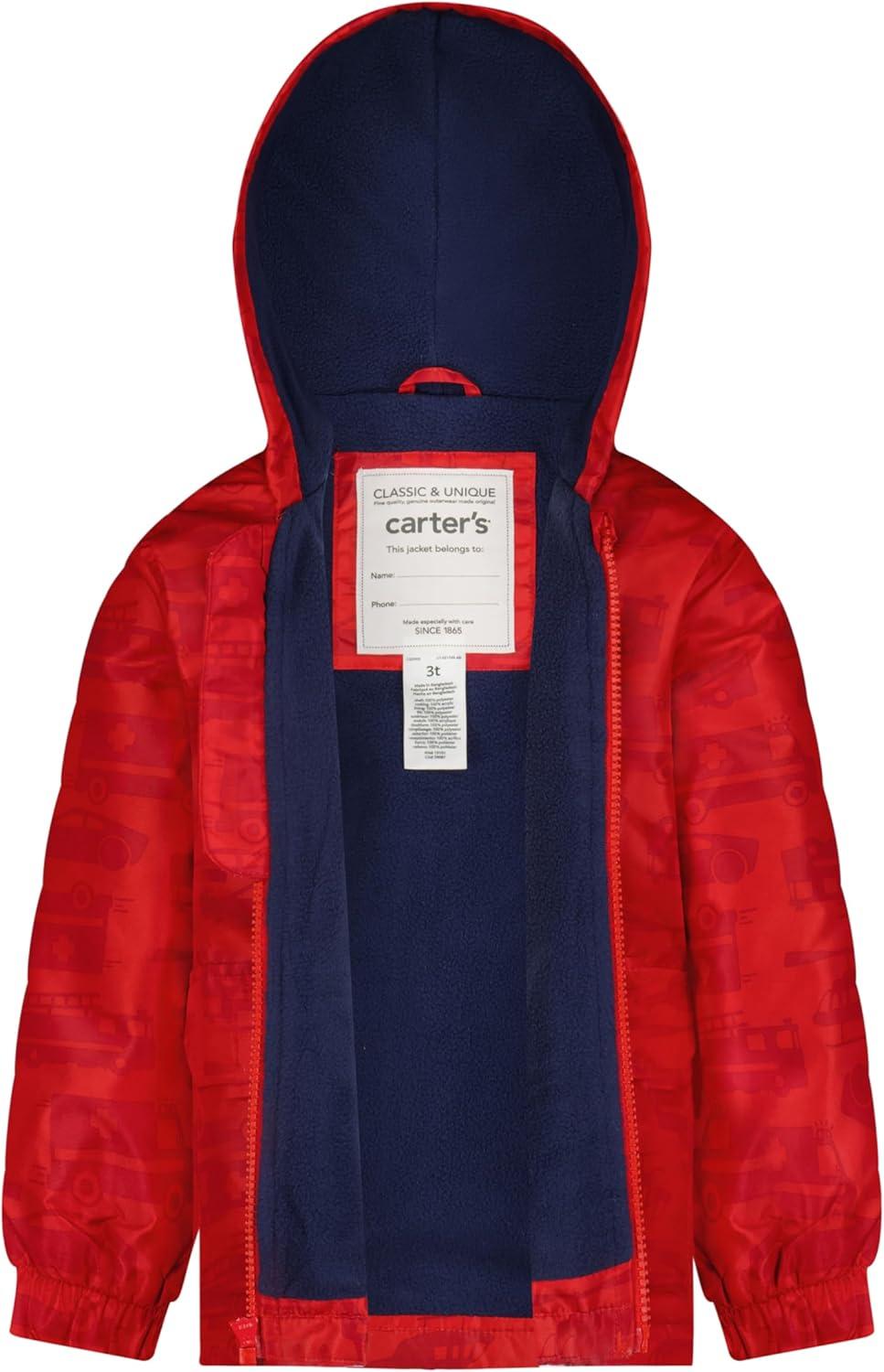 Carter’s Boys’ Fleece-Lined Flap-Pocket Rain Jacket Midweight Coat(Red Cars)