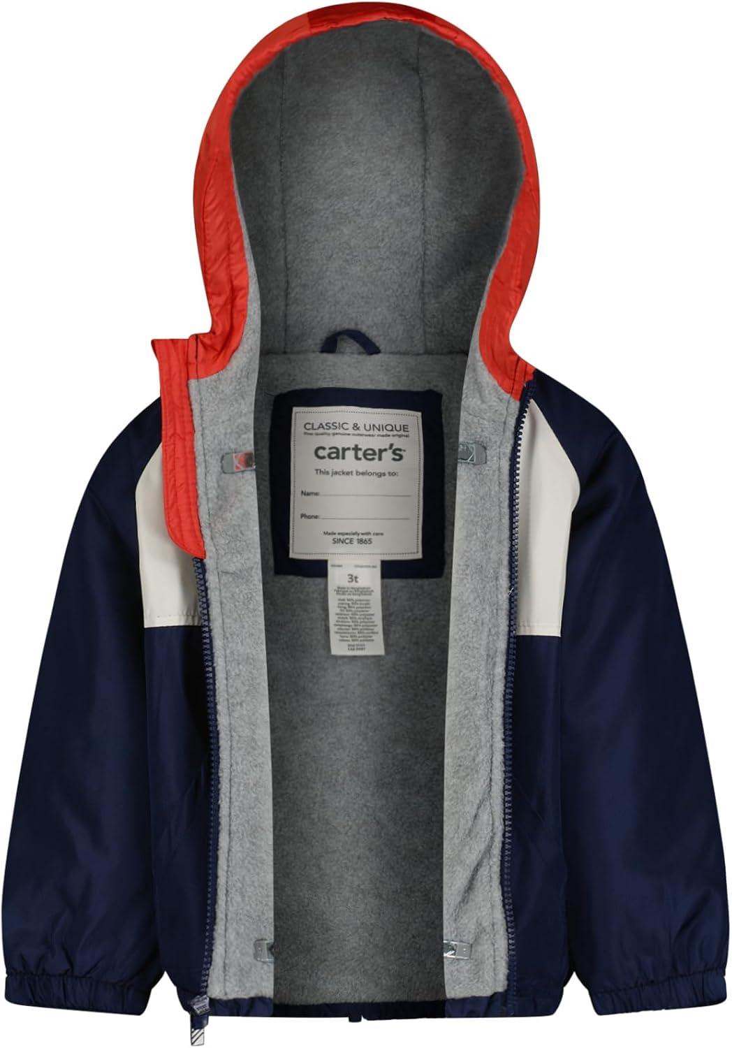 Keep your little adventurer warm and comfortable in this boys' midweight hooded jacket. Designed with a soft fleece lining for added warmth, this jacket is perfect for layering during chilly days. Its durable construction makes it ideal for outdoor play, while the elastic cuffs and full-length zipper ensure a snug fit. Whether heading to the park or playing in the backyard, this jacket provides the right mix of comfort and style, making it a versatile choice for active children. Carter's Kids and Baby Outerwear is designed with warmth, comfort, and style in mind to keep your little ones cozy and protected in any weather. Each piece is crafted from high-quality, durable materials that stand up to the elements, offering superior insulation while remaining lightweight and easy to wear. From snug puffer jackets and fleece-lined parkas to adorable snowsuits and raincoats, our outerwear collection ensures that every child, from babies to big kids, stays warm and dry, no matter the season