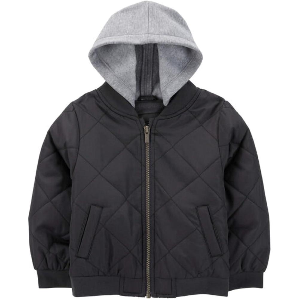Carter’s boys Midweight Quilted Bomber Jacket With Sweatshirt-style Hood(Black)