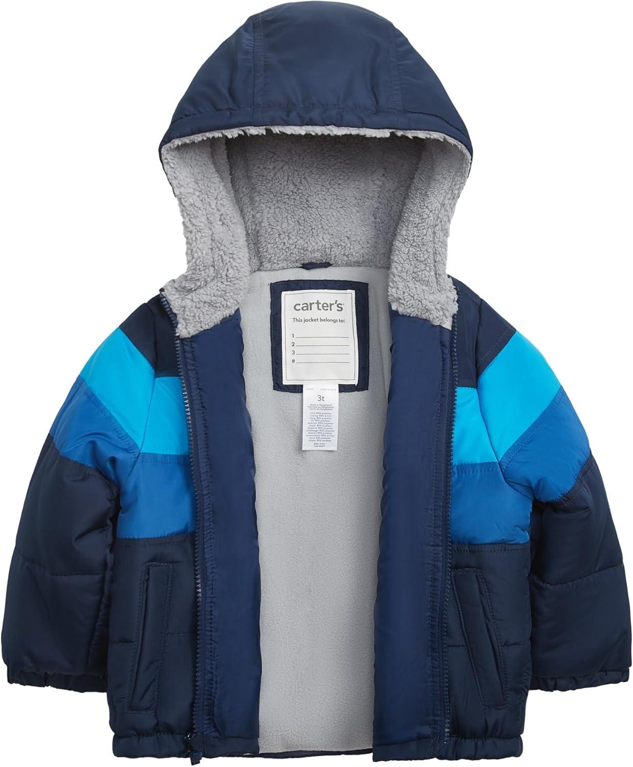 Carter’s boys Sherpa-lined Heavyweight Hooded Puffer Jacket(Navy)
