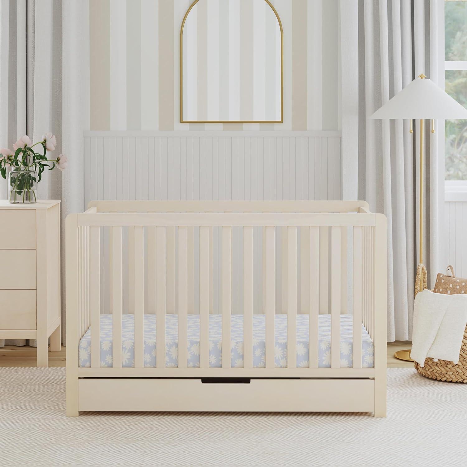 Carter’s by DaVinci Colby 4-in-1 Convertible Crib with Trundle Drawer in White, Greenguard Gold Certified, Undercrib Storage(Washed Natural)