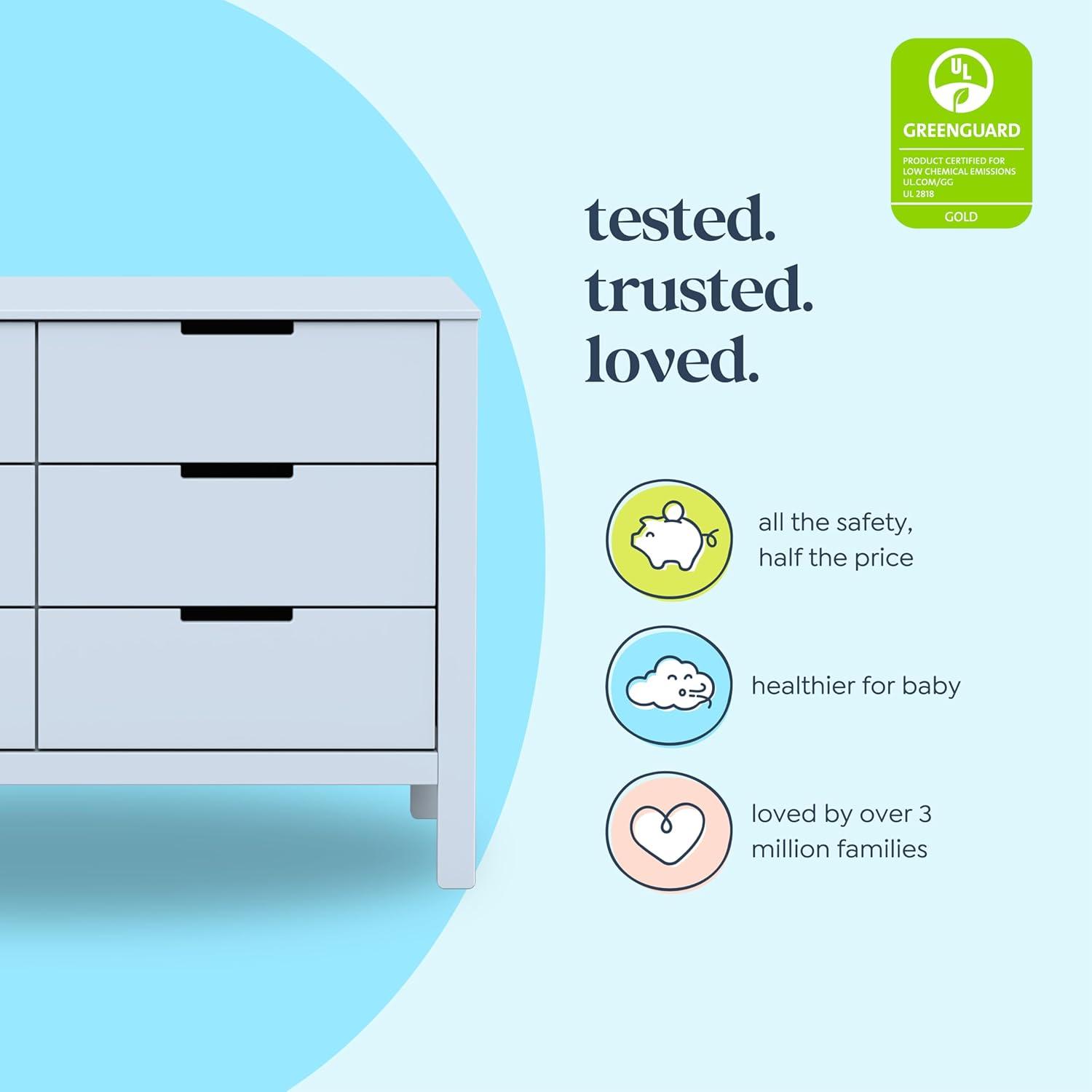 Carter’s by DaVinci Colby 6-Drawer Baby Dresser – Wooden Double Chest of Drawers for Kids, Boys, and Girls – Versatile Storage Dresser for Bedroom, Nursery, Living Room and Hallway – Light Sage(Powder Blue)