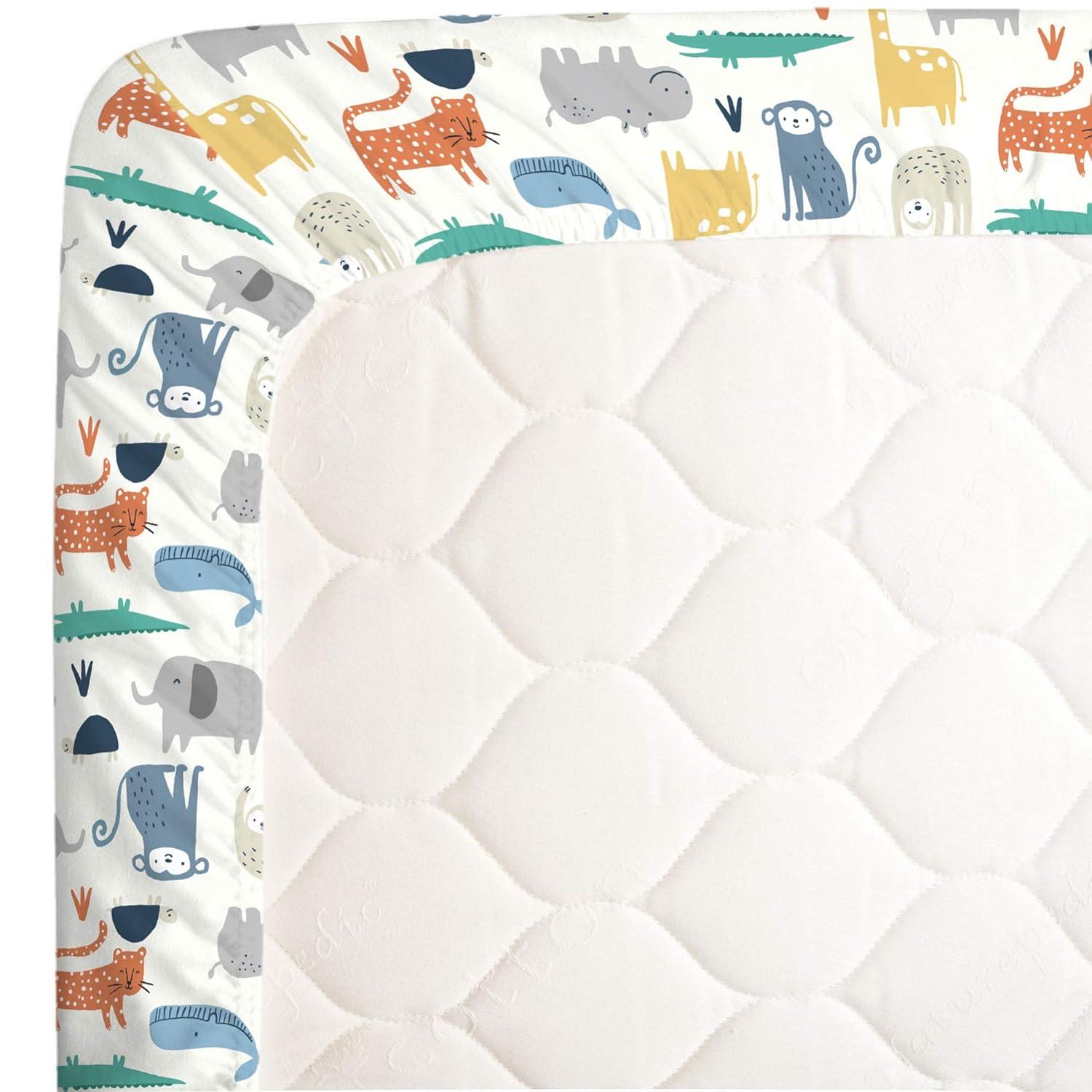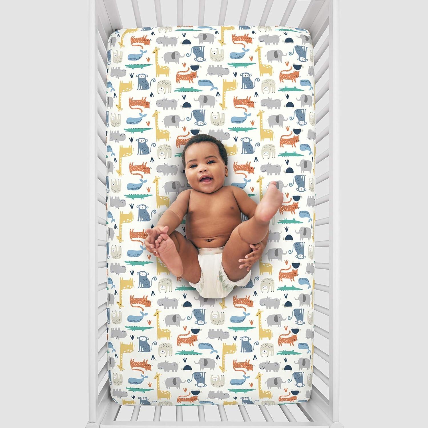 Carter’s Colorful Modern Safari Animals Super Soft Mini Crib Fitted Sheet, Orange, Green, Blue, Grey(Orange Green Blue Grey)