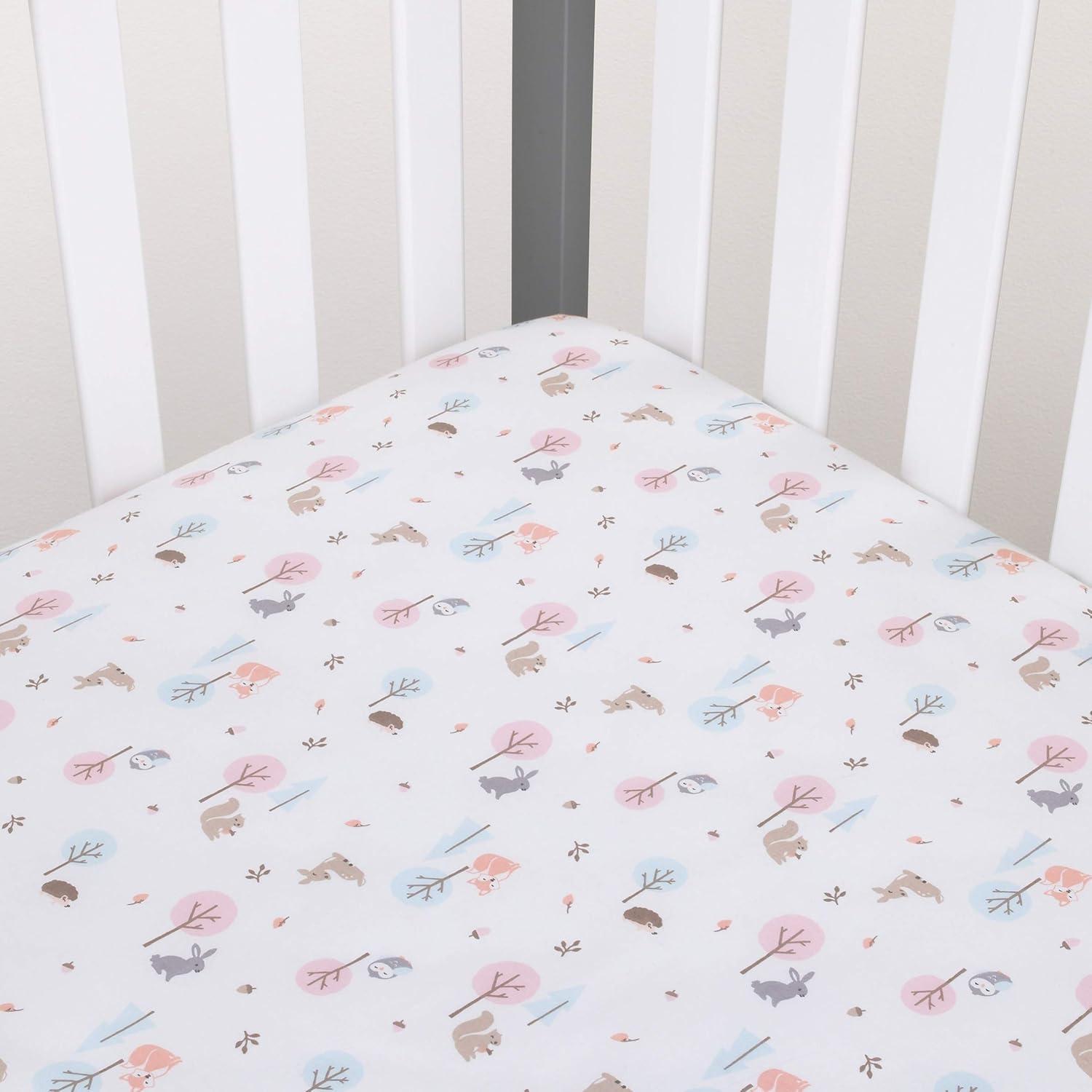 Carter’s Colorful Modern Safari Animals Super Soft Mini Crib Fitted Sheet, Orange, Green, Blue, Grey(Woodland Girl)