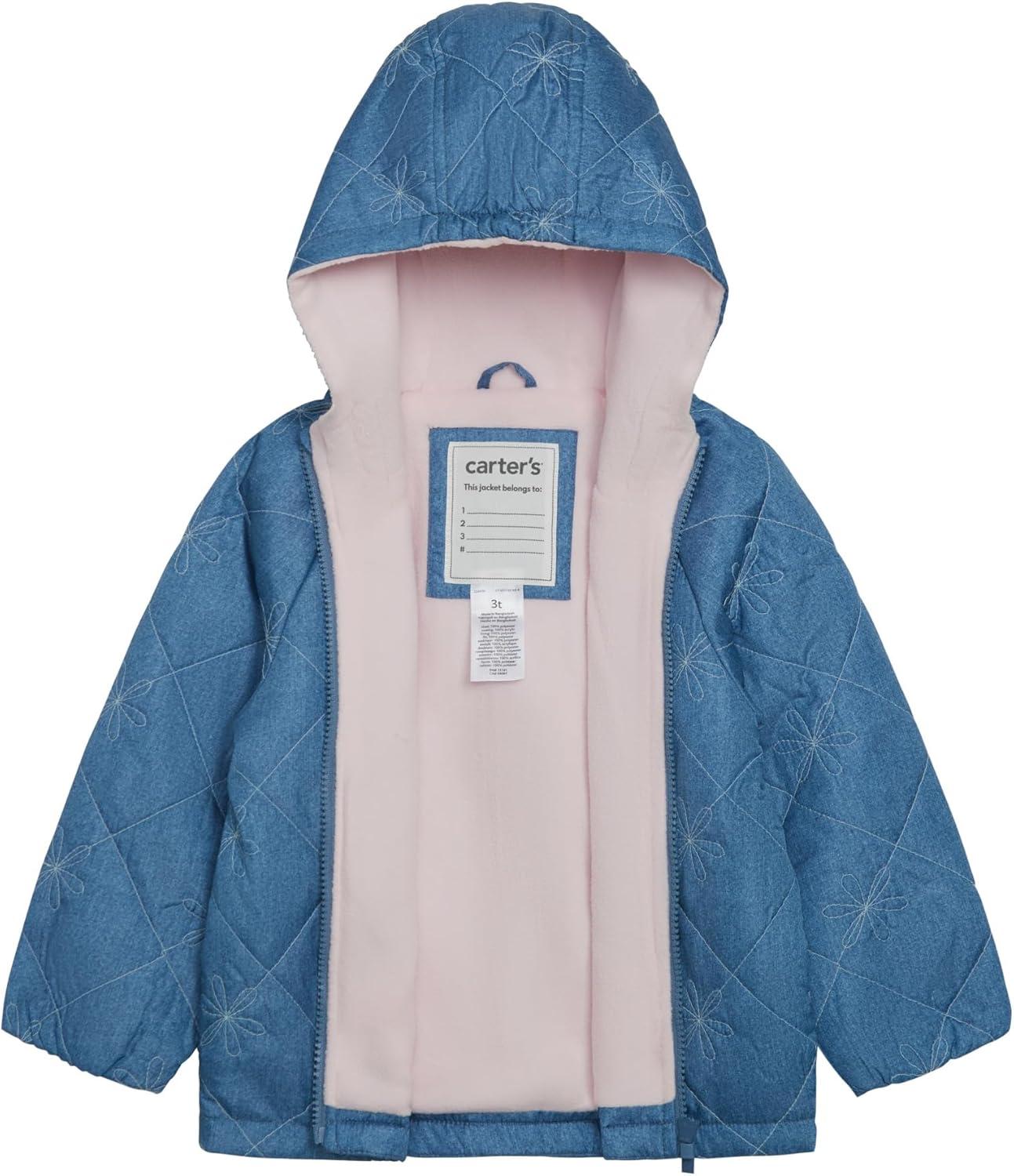 Carter’s Girls’ Daisy Diamond Quilted Midweight Jacket with Fleece Lining(Chambray)
