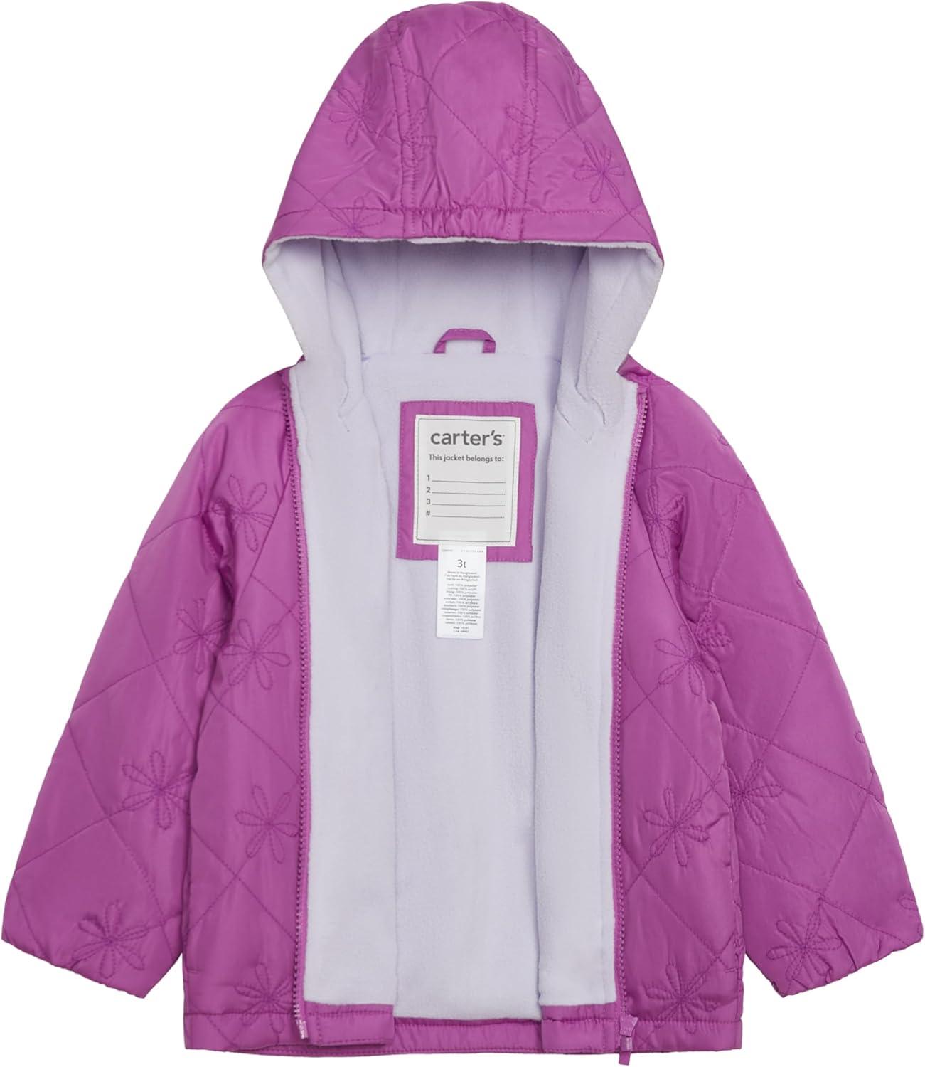 Carter’s Girls’ Daisy Diamond Quilted Midweight Jacket with Fleece Lining(Purple)