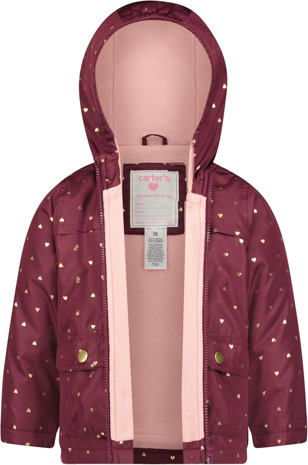 Carter’s girls Girls Midweight Winter Jacket, Warm, Hooded, Water-resistant Winter Coat(Burgundy With Hearts)