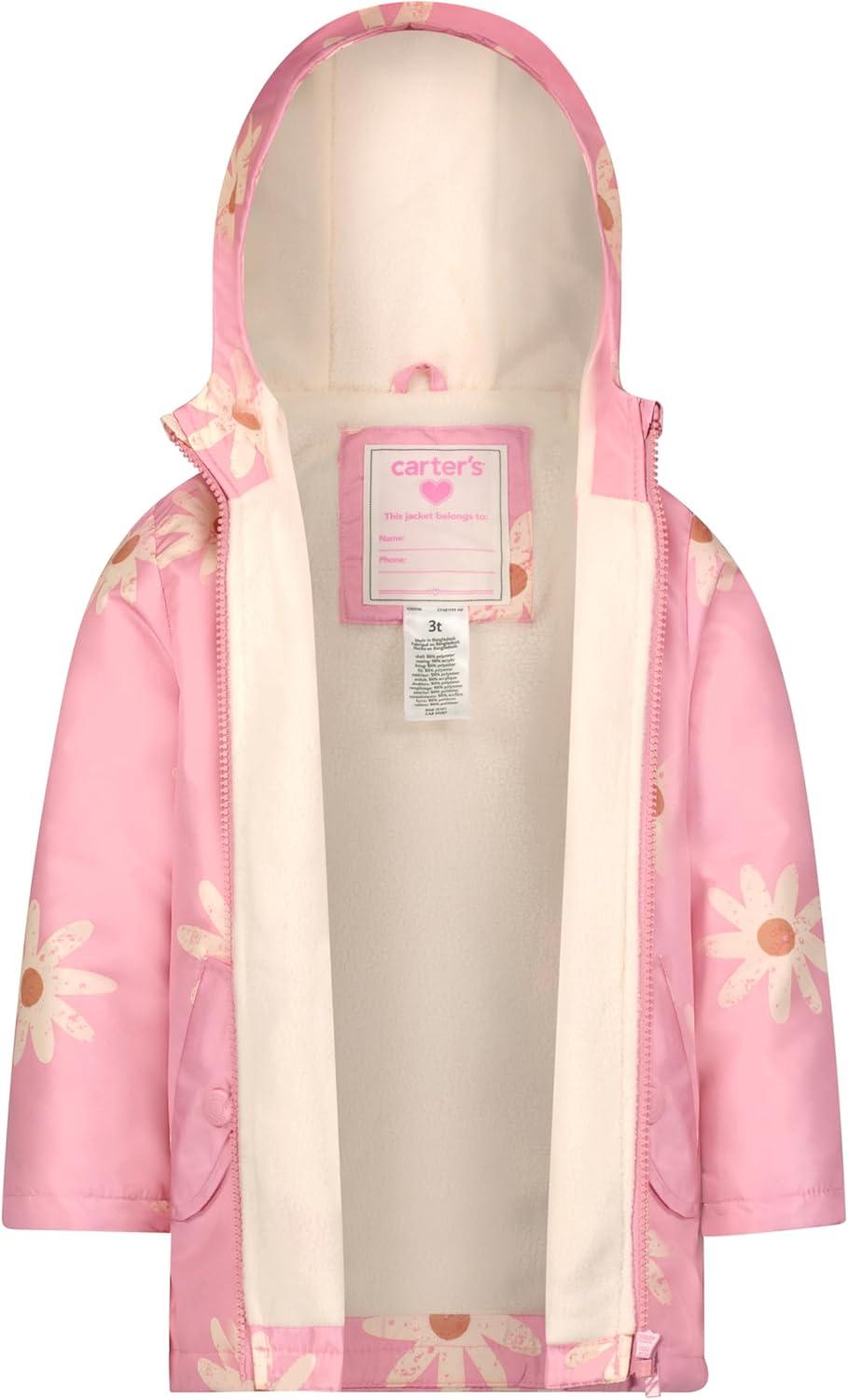 Carter’s girls Girls Midweight Winter Jacket, Warm, Hooded, Water-resistant Winter Coat(Pink Daisy)