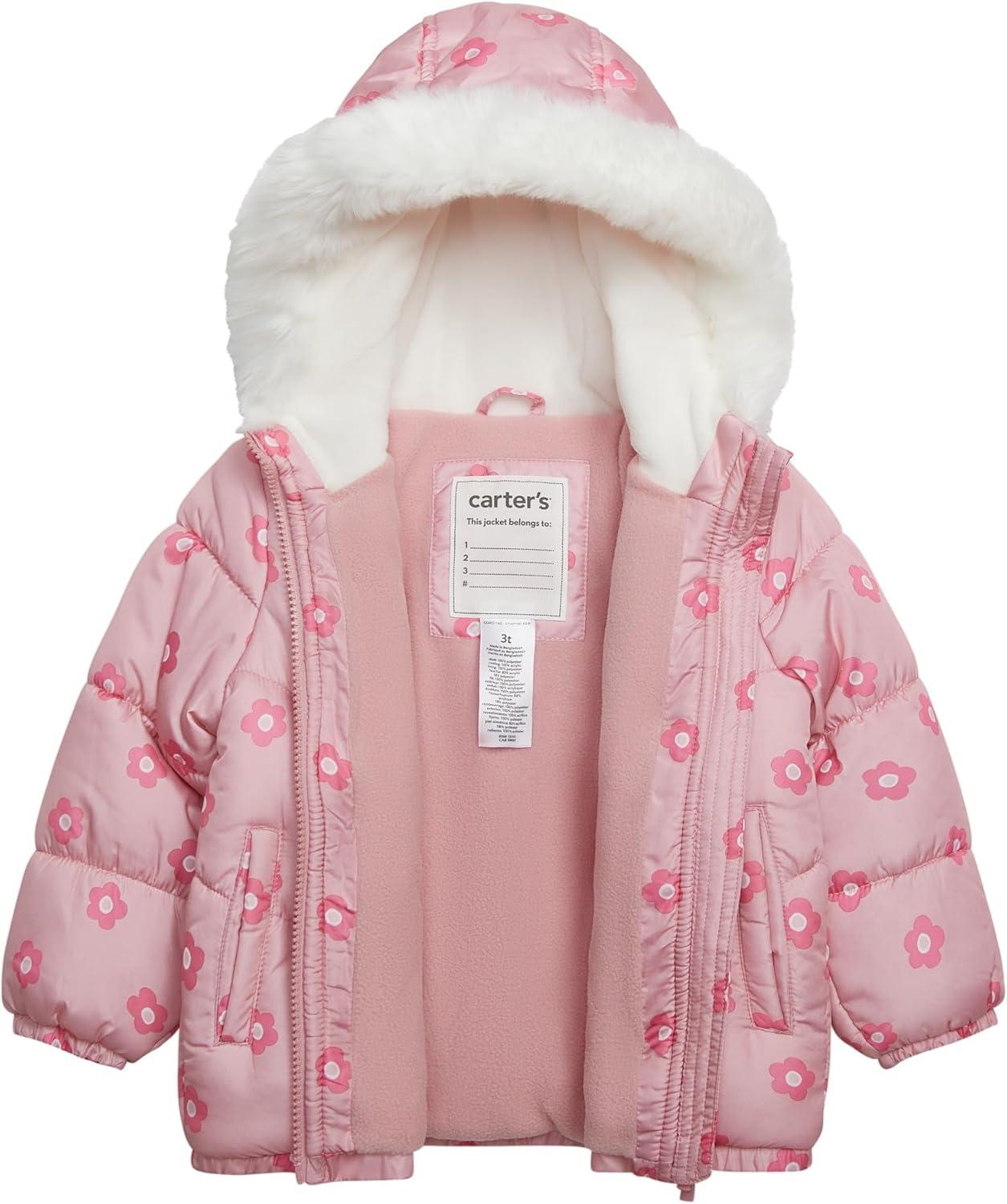 Prepare her for every flurry and snowflake in the Carter’s Girls’ 2-Piece Snowsuit Set, designed to bundle up toddlers and little girls in both comfort and style. This cold-weather combo includes a fully insulated zip-up winter jacket and a pair of snow bib overalls, creating a warm, weather-resistant barrier against chilly winds and snowy playdates.