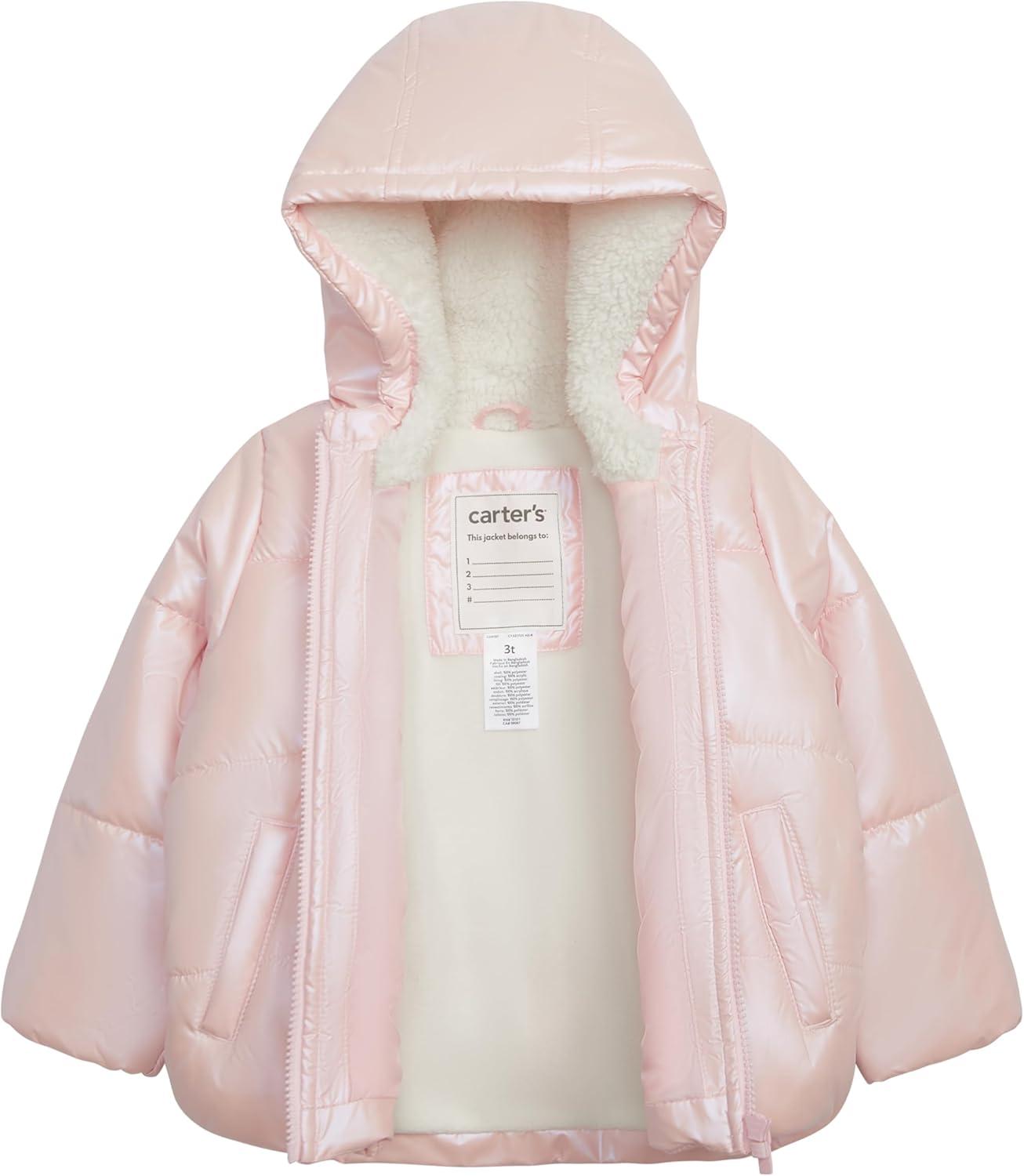 Carter’s Girls’ Winter Coat Puffer Jacket with Sherpa Lined Hood(Iridescent Pink)