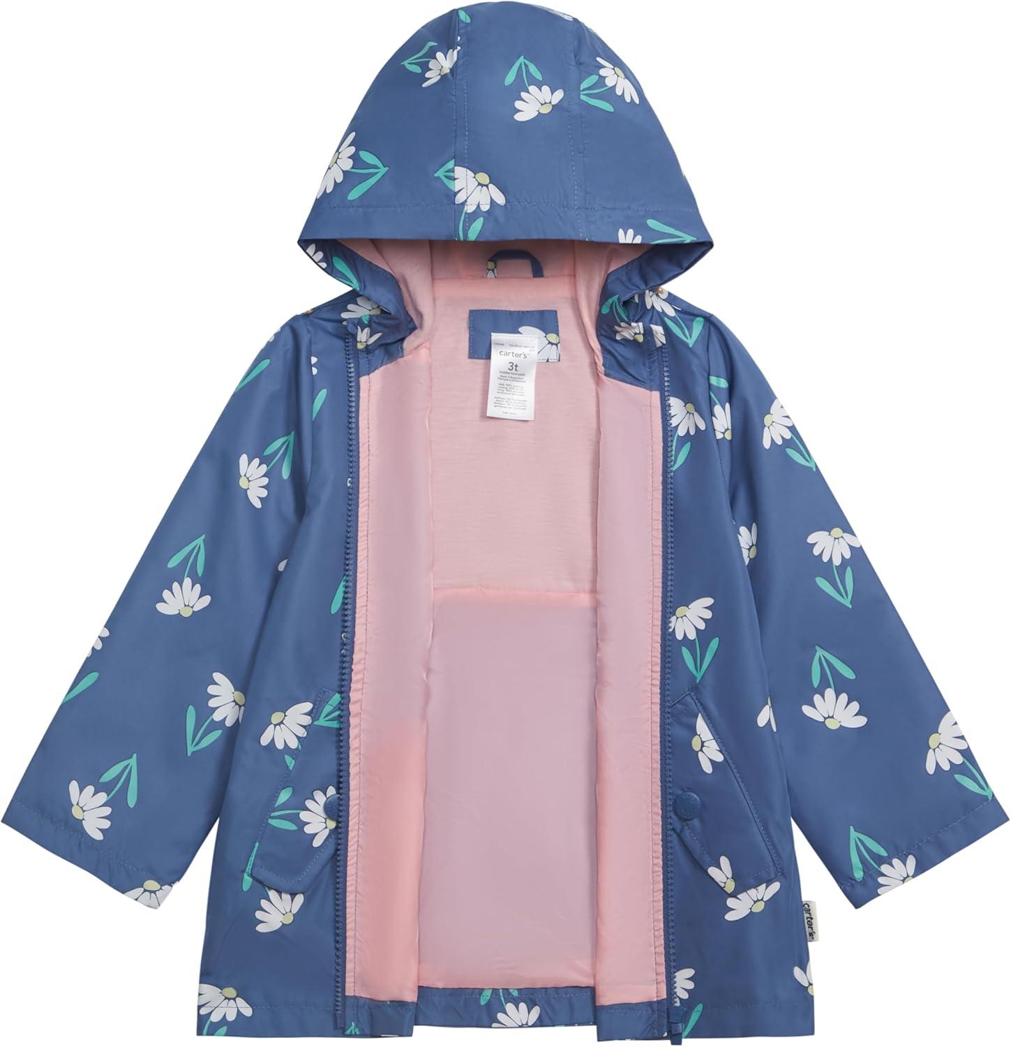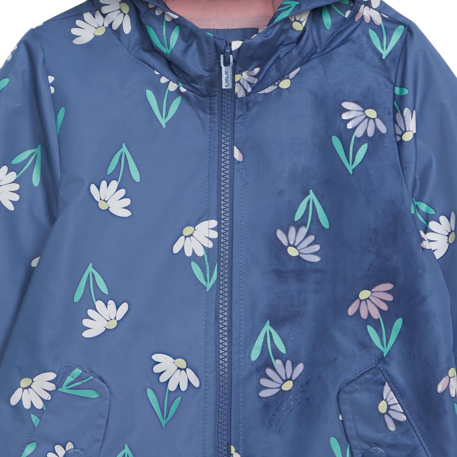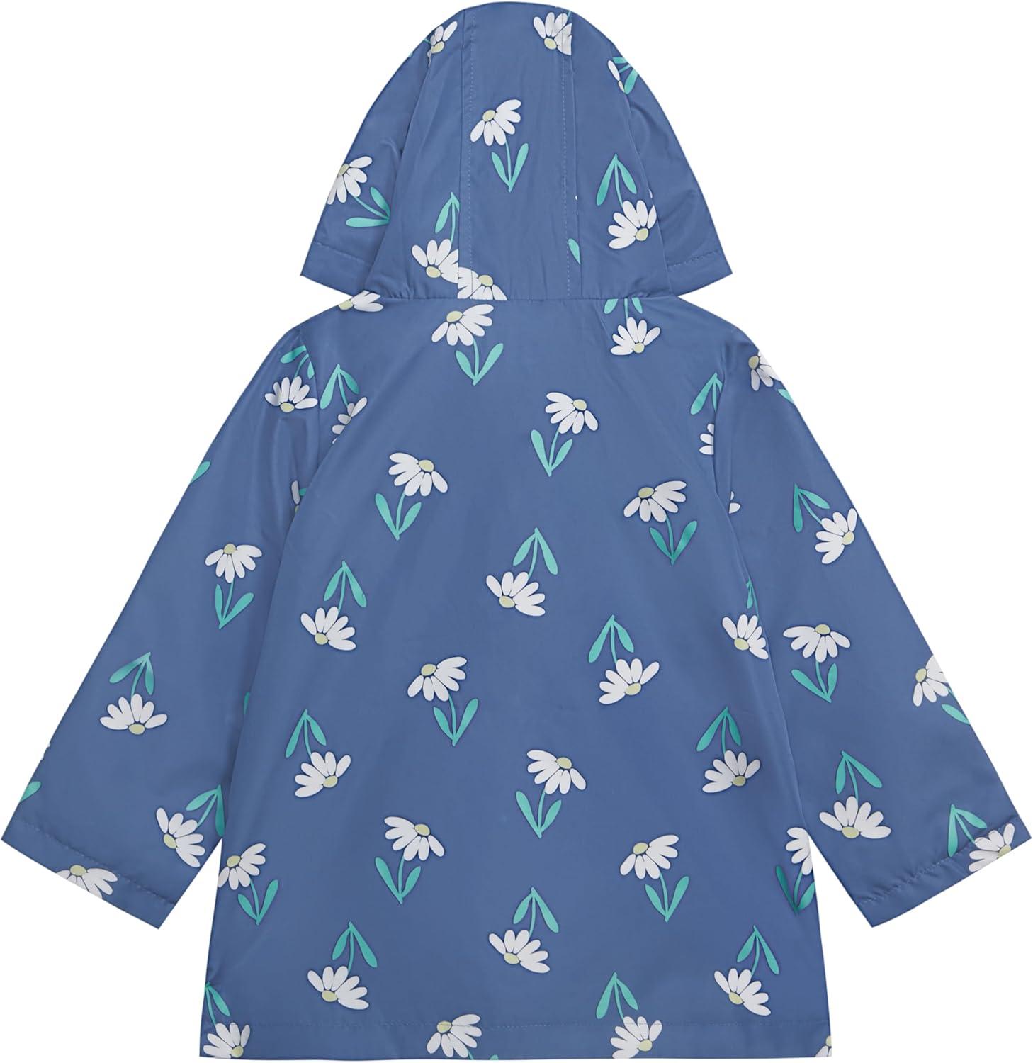 Carter’s Toddler & Little Girls’ Midweight Fleece Lined Hooded Raincoat Rain Jacket(Color Changing Blue)