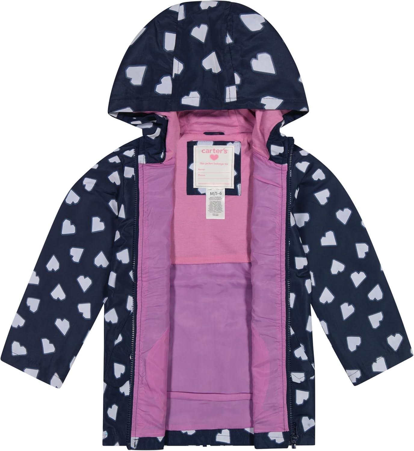 Carter’s Toddler & Little Girls’ Midweight Fleece Lined Hooded Raincoat Rain Jacket(Heart Print)