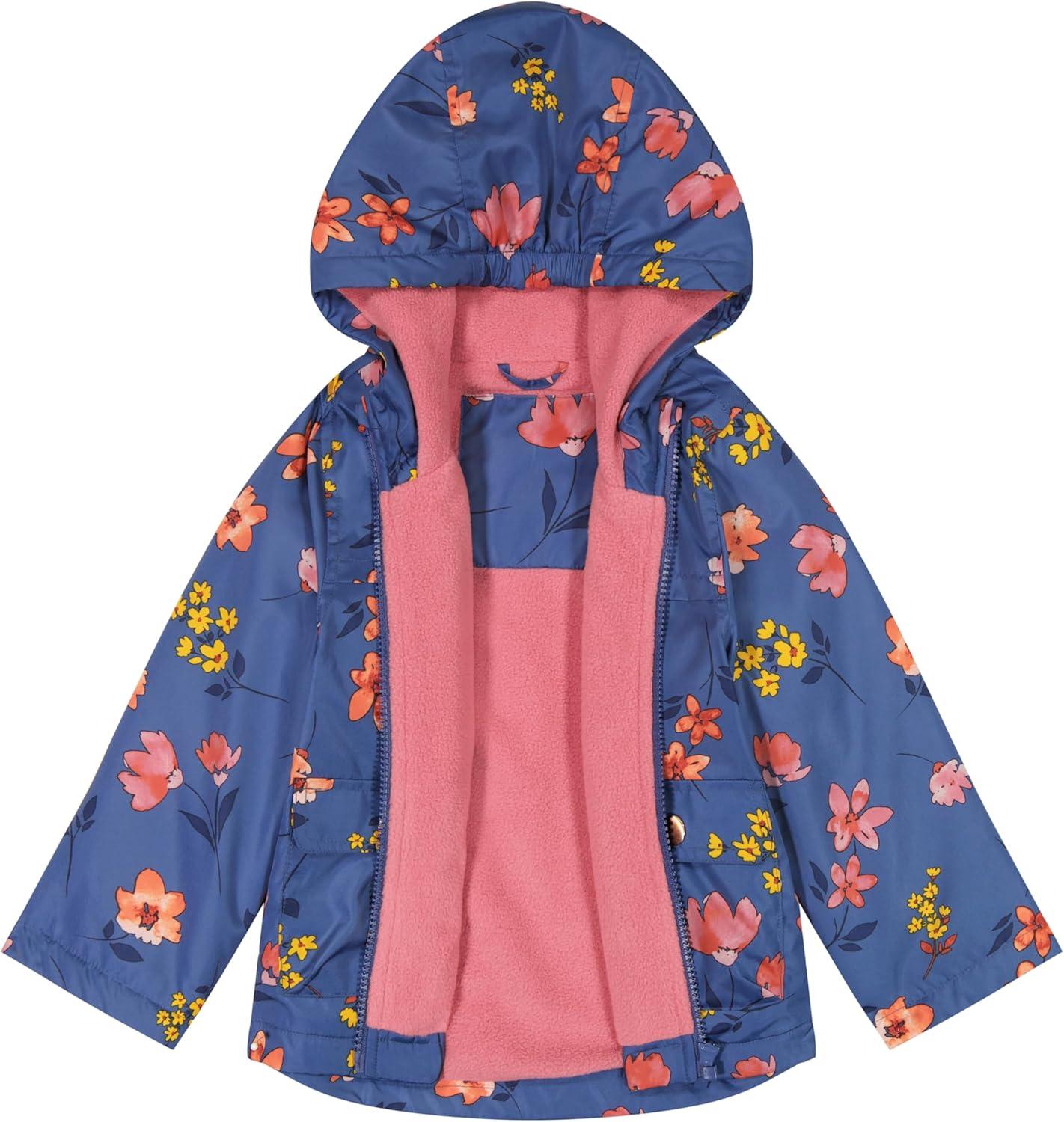 Carter’s Toddler & Little Girls’ Midweight Fleece Lined Hooded Raincoat Rain Jacket(Peri Coral Floral)