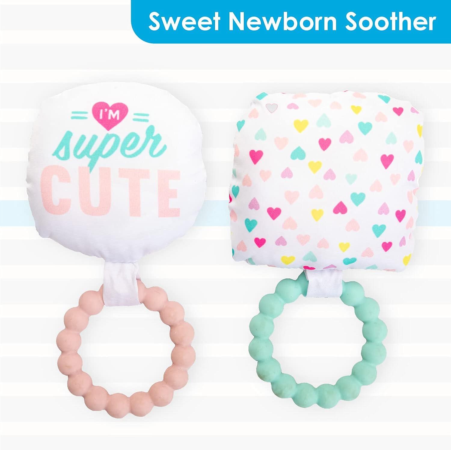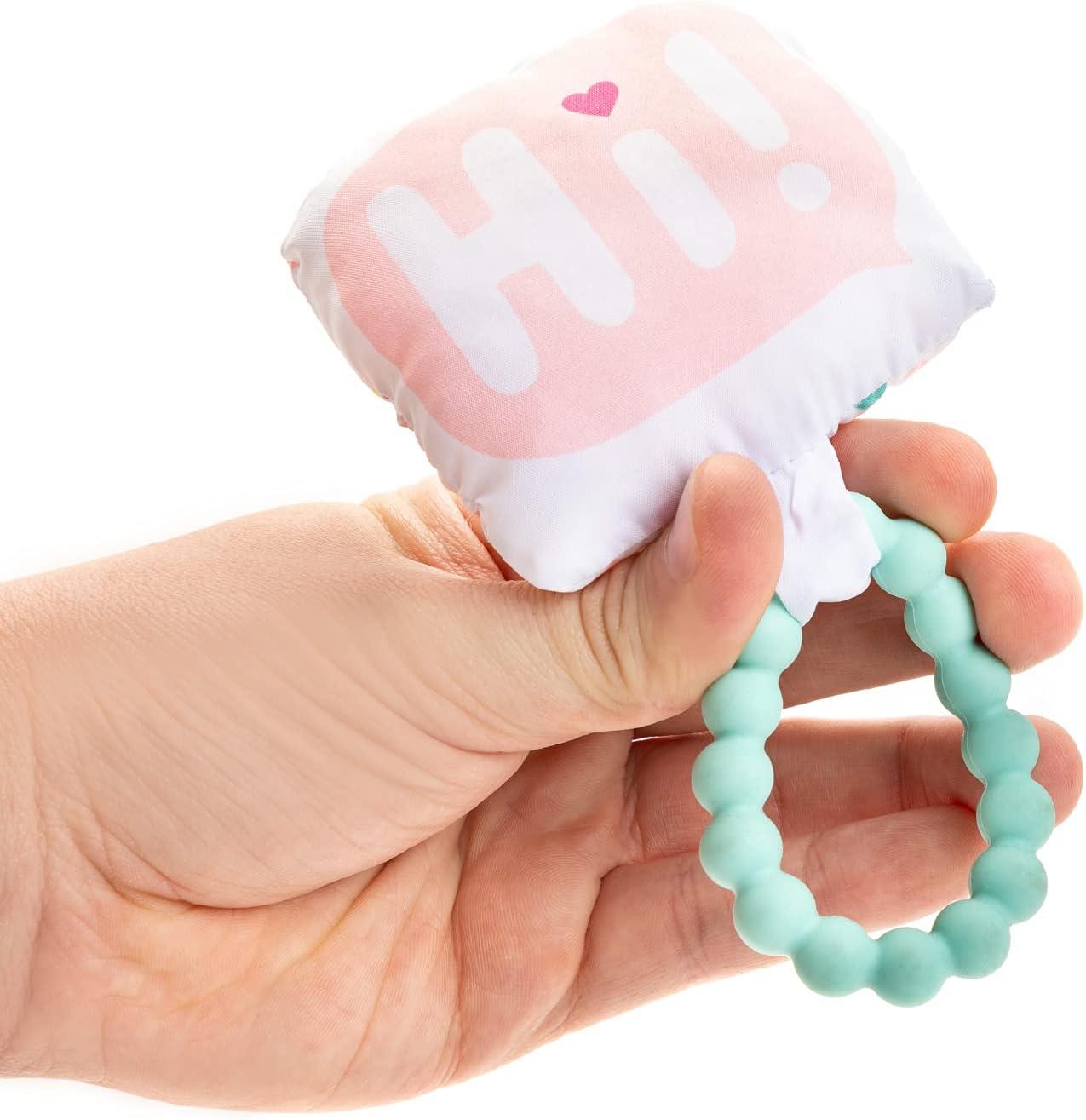 SOFT TEETHING TOY: Fun interactive materials keep baby engaged. This toy features soft for tiny fingers to explore and a textured silicone teether.