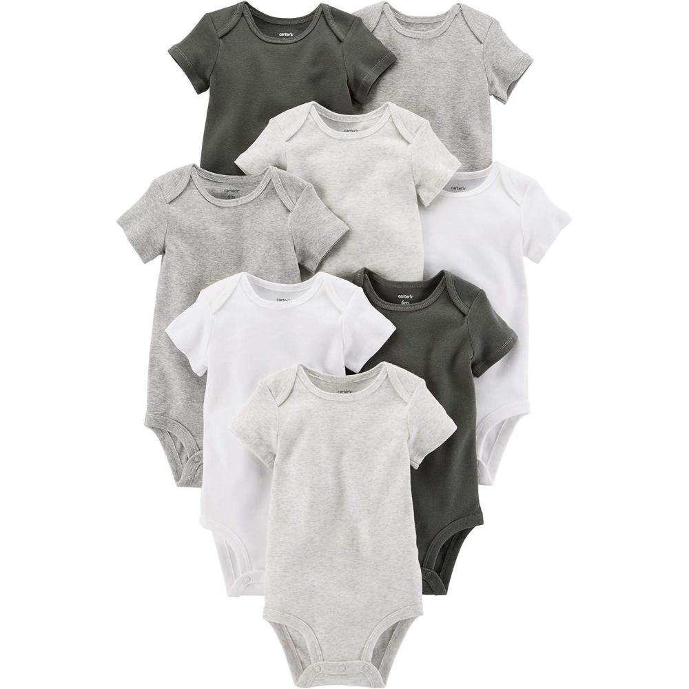 Carter’s unisex-baby 8-pack Short Sleeve Bodysuits(White/Grey)
