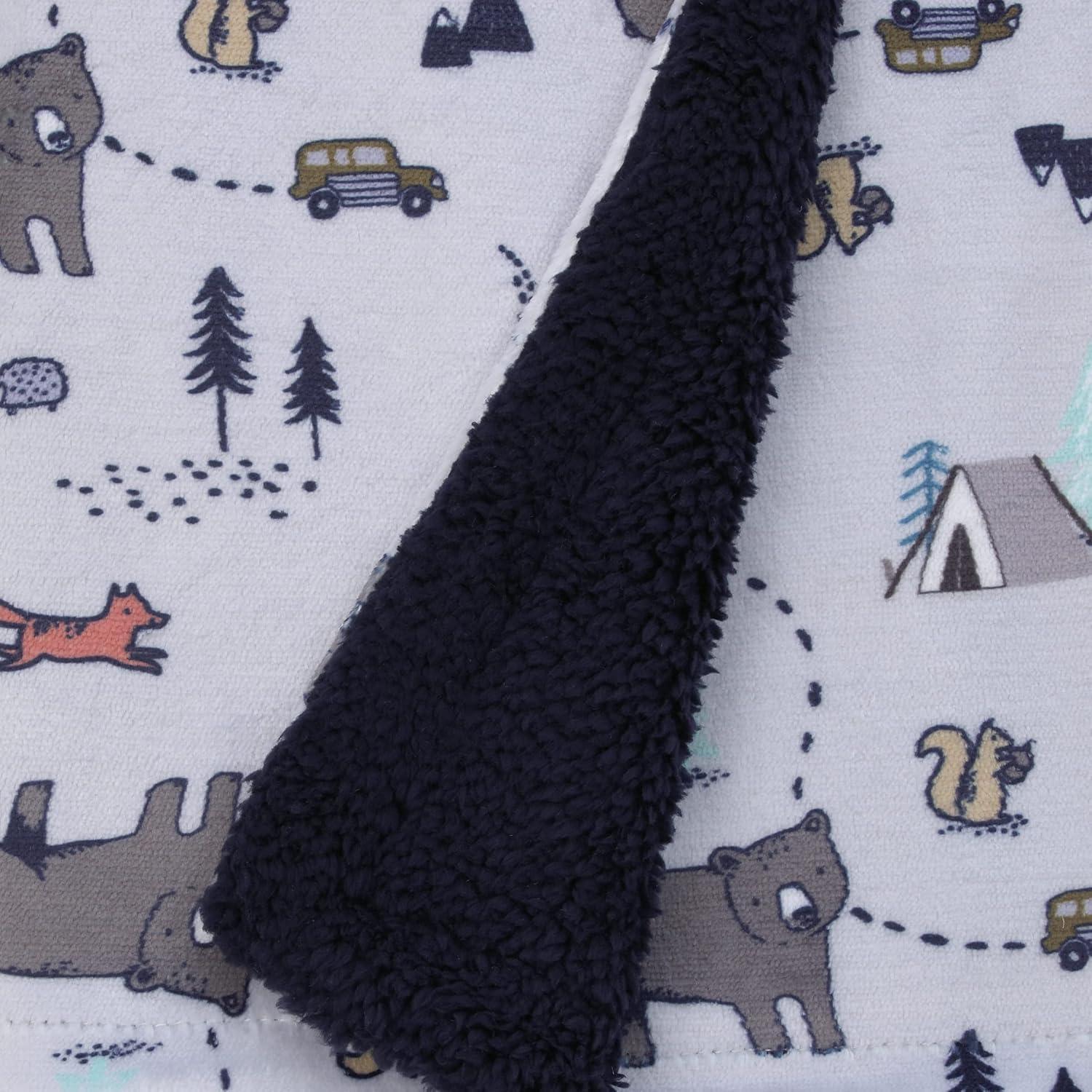 NoJo Carter’s Woodland Friends Gray and Multi Colored Bear and Fox Squirrel, Tree, Tent, and Campfire Super Soft Baby Blanket
