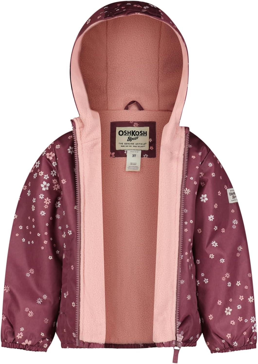 OSHKOSH B’GOSH baby-girls Fleece Lined Water Resistant Midweight Hooded Jacket(Grape Twist Ditsy Floral)