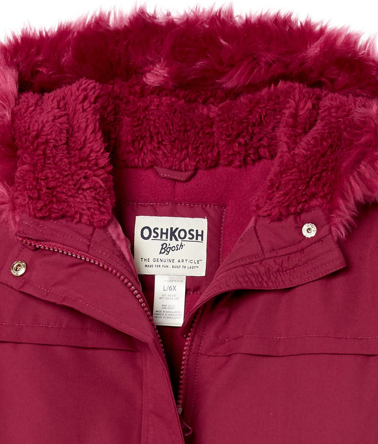 OshKosh B’gosh Girls Heavyweight Faux Fur Hooded Parka Warm Winter Coat(Scarlet)
